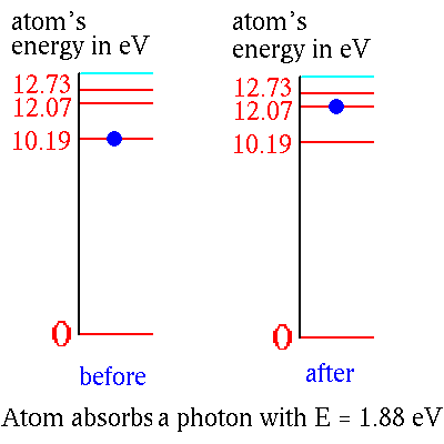 εκπομπή φωτονίου ενέργεια του απορροφημένου φωτονίου = (ενέργεια ατόμων μετά από) - (ενέργεια ατόμων πριν)