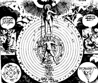 αριστερά). Στο κέντρο ο άνθρωπος, εικόνα του μικρόκοσμου, που συνδέεται