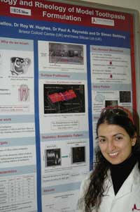 Τα περισσότερα κορίτσια αγαπούν το μέικαπ τους, αλλά πόσα θα έκαναν τη σύνδεση ανάμεσα στη χημεία και στα καλλύντικά, και πόσα νεαρά κορίτσια εμπνέονται έτσι ώστε να σπουδάσουν επιστήμη μετά το σχολείο; H Linda νιώθει πως είναι ένα πολύ τυχερό άτομο. Η σχολική επιστήμη όχι μόνο της επέτρεψε να ανακαλύψει τι είναι η επιστήμη, αλλά την έκανε περισσότερο προσβάσιμη και της έδειξε πως η επιστήμη εφαρμόζεται στην καθημερινή ζωή. Ήταν ακόμη πιο ενθουσιασμένη όταν έφτασε ο καιρός για πρακτική εργασία. Και χωρίς τη σχολική επιστήμη, η Linda δεν θα βρισκόταν εδώ που βρίσκεται σήμερα, απολαμβάνοντας την επιστημονική έρευνα. “Η επιστήμη είναι παντού γύρω σου, θα ήθελα να μπορώ να καταλαβαίνω τι συμβαίνει στη ζωή μου!” Όταν οι περισσότεροι από εμάς σκεφτόμαστε για καλλυντικά, στο μυαλό έρχονται σκιές ματιών, μάσκαρα και έντονο κόκκινο κραγιόν. Κανείς δεν σκέφτεται την οδοντόκρεμα. Αλλά υπάρχουν επιστήμονες που ερευνούν τις ιδιότητες και τα συστατικά της οδοντόκρεμας, και η Linda είναι ένας από αυτούς. Επί του παρόντος, ερευνά τη λειαντικότητα της οδοντόκρεμας: συγκεκριμένα, τη σκληρότητα σωματιδίων πυριτίου που περιέχονται στις οδοντόκρεμες. Μελετά τη δομή αυτών των σωματιδίων και πως αυτά τρίβουν την επιφάνεια των δοντιών. Για τους κατασκευαστές οδοντόκρεμας, είναι πολύ σημαντικό να γνωρίζουν όσο το δυνατό περισσότερες πληροφορίες για τα συστατικά της. Η οδοντόκρεμα λειτουργεί αφαιρώντας το στρώμα πρωτεϊνών που σχηματίζεται στην επιφάνεια των δοντιών μετά την έκθεσή τους σε σάλιο, καταπολεμώντας τη δημιουργία τερηδόνας. Για να αφαιρεθεί αυτό το στρώμα χρειάζεται μια λειαντική οδοντόκρεμα, αλλά όχι τόσο λειαντική που να φθείρει την οδοντίνη (στα όρια των ούλων). Η Linda ξεκίνησε παρασκευάζοντας και χαρακτηρίζοντας μια βάση οδοντόκρεμας που αποτελούνταν από πυρίτιο, σορβιτόλη, πολυαιθυλενική γλυκόλη, θειϊκό νάτριο, καρβοξυμεθυλοκυτταρινικό νάτριο και νερό. Στις οδοντόκρεμες του εμπορίου προστίθενται επίσης αρωματικά και φθόριο. Η Linda ελέγχει in vitro την ικανότητα καθαρισμού και λείανσης της βάσης οδοντόκρεμας που παρασκεύασε, χρησιμοποιώντας μια μηχανή βουρτσίσματος με πλευρικές κινήσεις. Θα ήταν δυνατό να ελεγχθεί η οδοντόκρεμα χρησιμοποιώντας κομμάτια οδοντίνης από βγαλμένα αληθινά δόντια, αλλά η Linda βρήκε πρακτικότερο να χρησιμοποιήσει ένα μοντέλο από ακρυλικό γυαλί (Perspex), το οποίο έχει παρόμοιες φυσικές ιδιότητες με αυτές της οδοντίνης. Για τον έλεγχο της ικανότητας λείανσης, βουρτσίζει μια πλάκα Perspex για συγκεκριμένο χρονικό διάστημα χρησιμοποιώντας την οδοντόκρεμα, και στη συνέχεια υπολογίζει το δείκτη λείανσης ποσοτικοποιώντας την ανακλαστικότητα της πλάκας Perspex πριν και μετά το βούρτσισμα. Για να μετρήσει το πόσο αποτελεσματική είναι η οδοντόκρεμα στο καθάρισμα των δοντιών, η Linda πραγματοποιεί παρόμοιους ελέγχους χρησιμοποιώντας βαμμένο υδροξυαπατίτη (κρυστάλλους απατίτη από ασβέστιο και φωσφορικό άλας [Ca10(PO4)6(OH)2]), το οποίο είναι το κύριο συστατικό της αδαμαντίνης. Συγκρίνοντας διαφορετικές βάσεις οδοντόκρεμας που περιέχουν διαφορετικούς τύπους σψματιδίων πυριτίου, η Linda μπορεί να βρεί τα ιδανικά συστατικά για οδοντόκρεμα. "Βασικά, το θέμα είναι να εξασφαλιστεί μέγιστος καθαρισμός των δοντιών και ελάχιστο γδάρσιμο. Το βρίσκω ενδιαφέρον, απλά επειδή άμεσα αγγίζει τον καθέναν – δυο φορές τη μέρα!” Η Linda πάντα ήξερε ότι ήθελε 