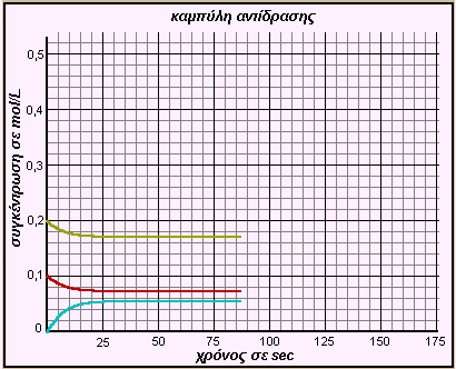 Σχεδιασμός του διαγράμματος συγκέντρωσης - χρόνου (καμπύλη αντίδρασης) μιας εξώθερμης αντίδρασης, με ορισμένες αρχικές ποσότητες και σε σταθερή θερμοκρασία.